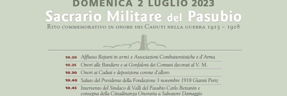Domenica 2 luglio la Fanfara Note Alpine parteciperà alla cerimonia presso il Sacrario militare del Pasubio in onore dei Caduti nella Guerra 1915-1918, organizzata dalla Fondazione 3 Novembre 1918.