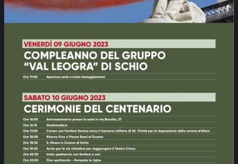 Domenica 11 giugno 2023 saremo presenti a Schio (VI) per festeggiare il centenario del Gruppo Alpini “Val Leogra” di Schio.Sfileremo per le vie cittadine portando la nostra musica a tutta la città.