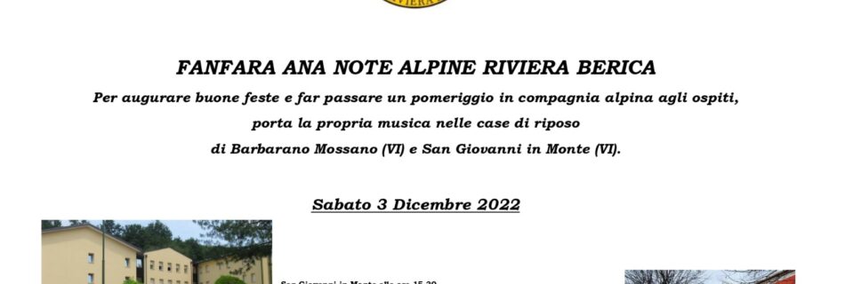 Le Note Alpine desiderano con la loro musica portare i propri auguri di Buone Feste agli ospiti delle RSA di Barbarano Mossano e di San Giovanni in Monte.